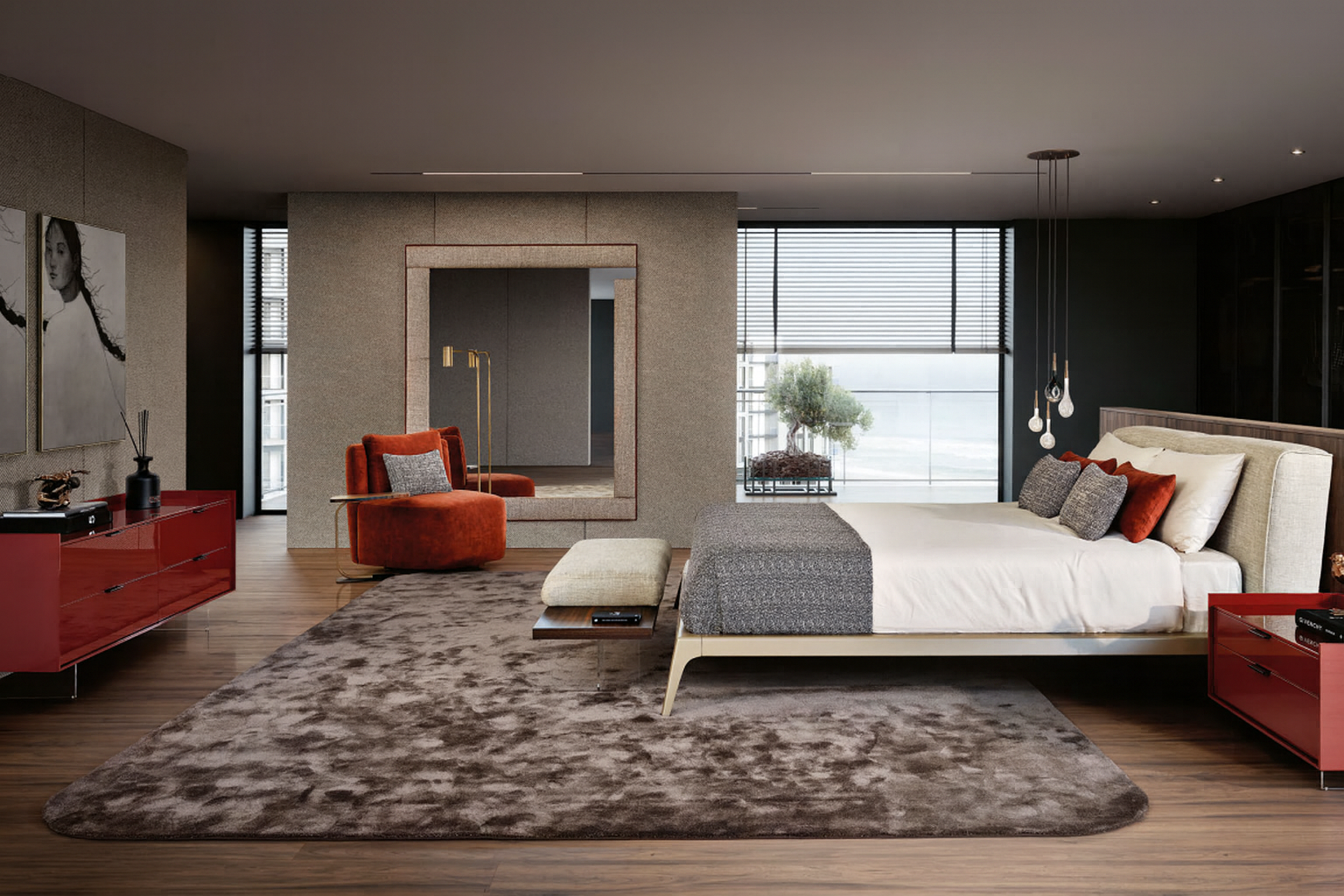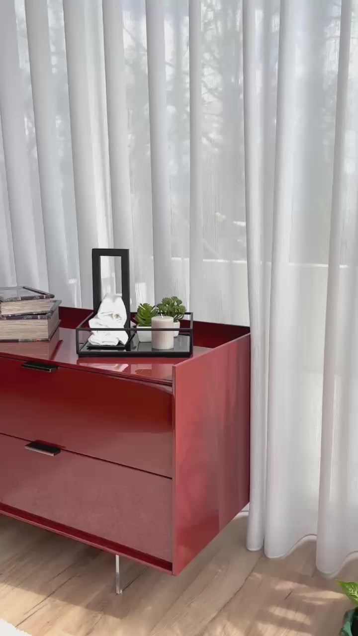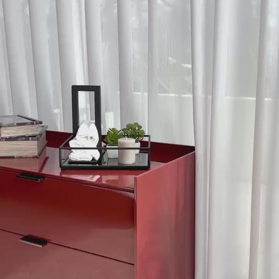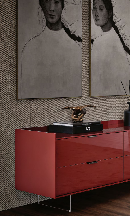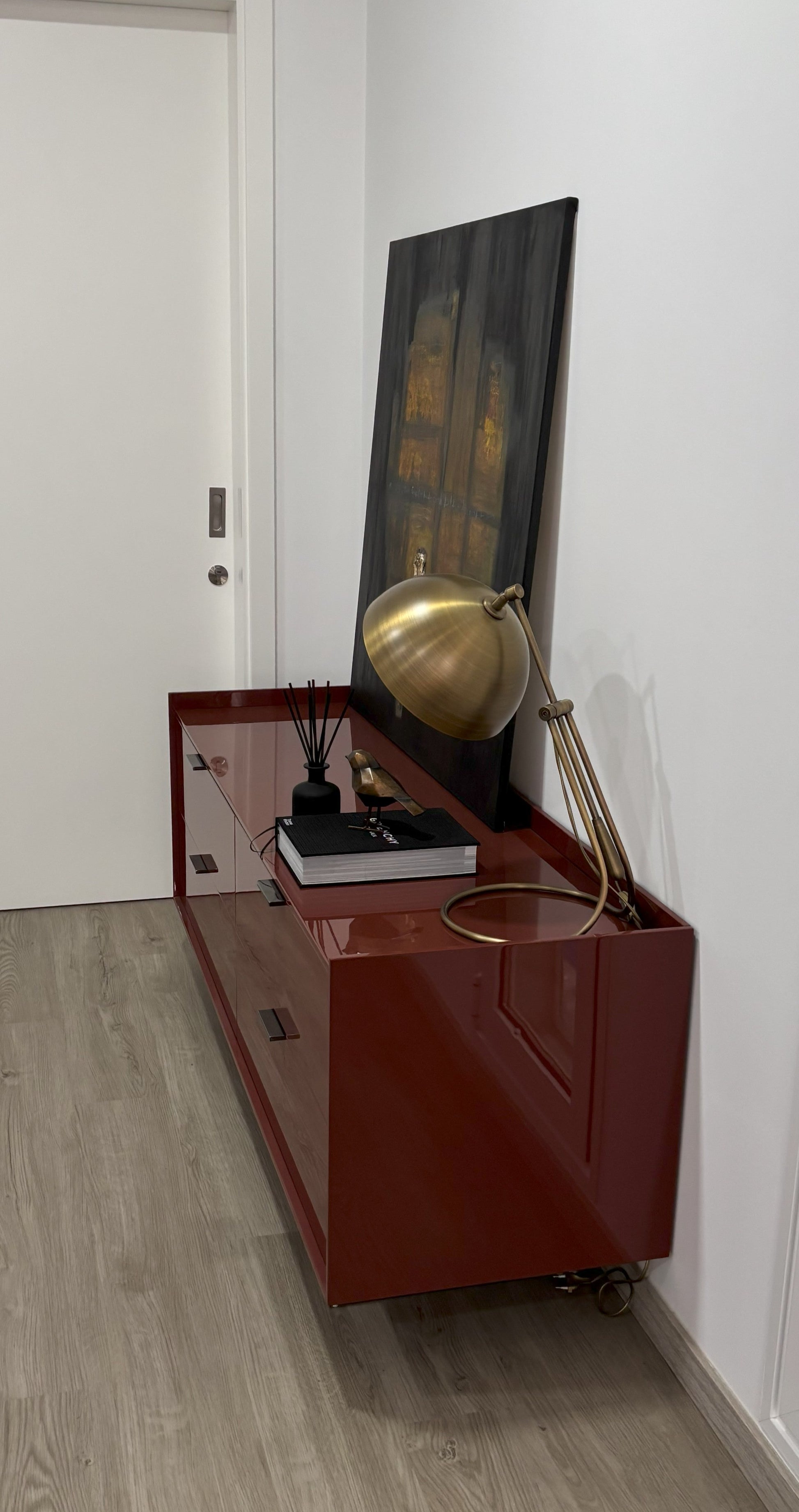 Com acabamento lacado de alto brilho, reflete a luz de forma subtil, criando um ambiente mais luminoso e sofisticado. O seu design rigoroso e proporções equilibradas valorizam linhas limpas e contemporâneas.