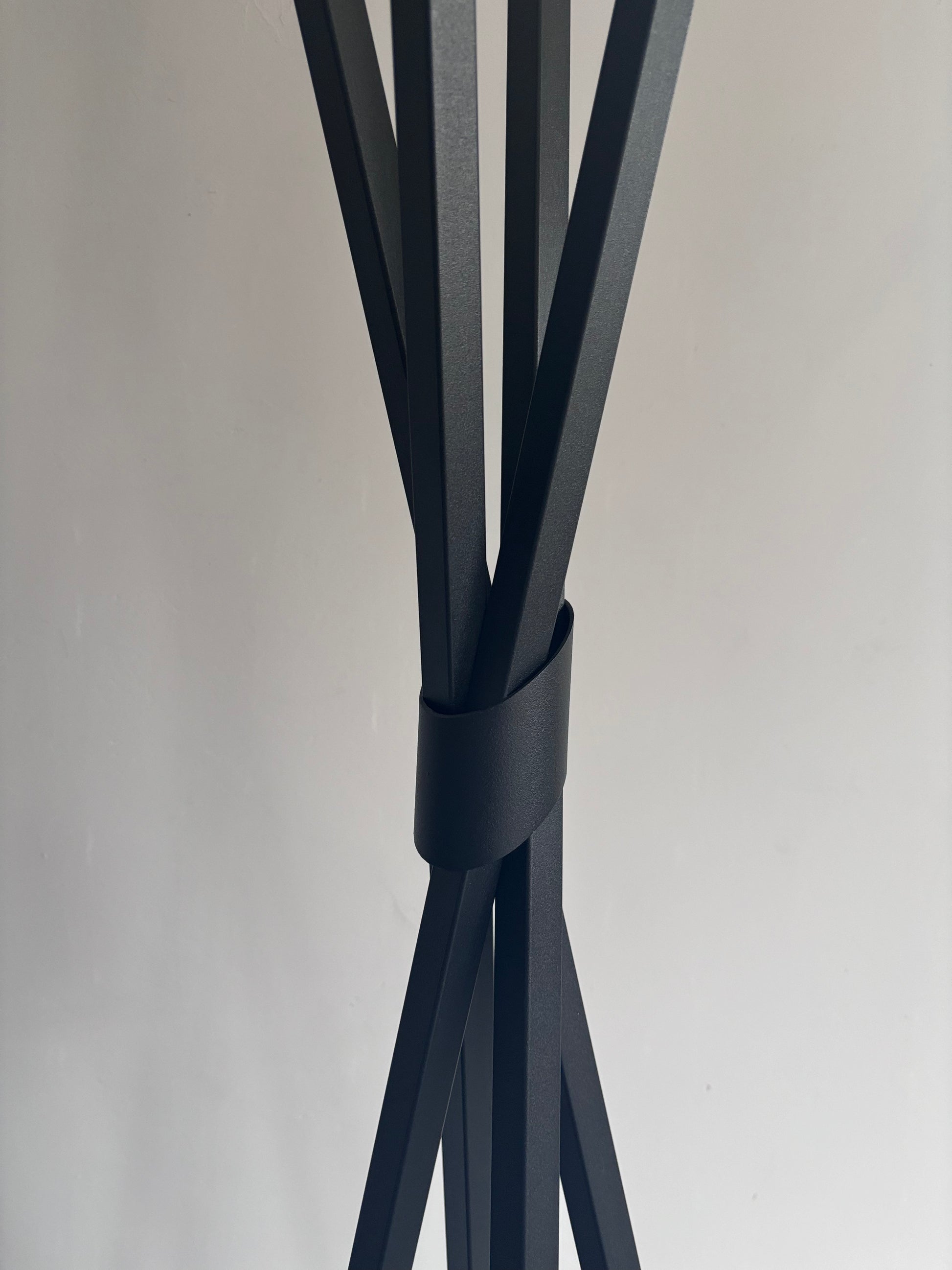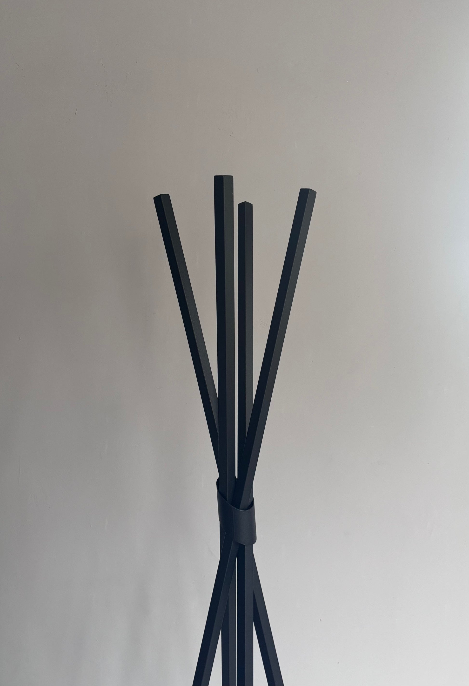 O Cabide Trança forma um entrelaçado harmonioso entre os tubos metálicos, criando movimento e fluidez no espaço.