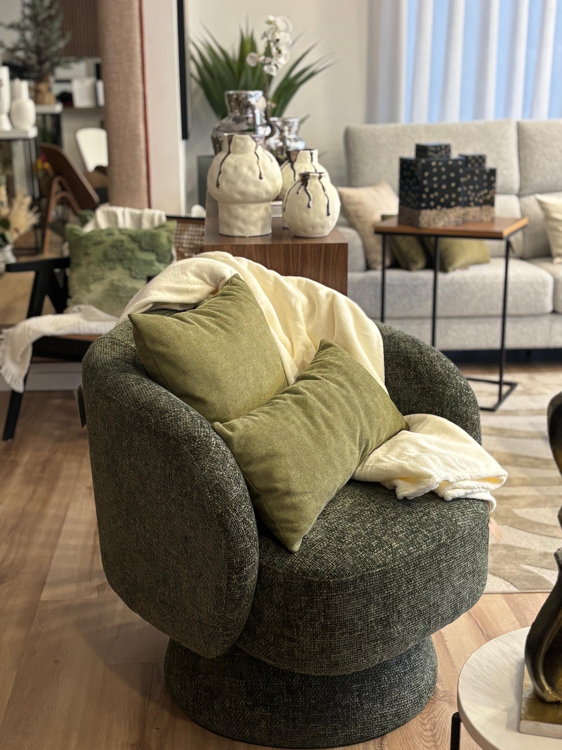 O Cadeirão Areias combina linhas suaves e um volume acolhedor que convida ao descanso. O assento rotativo permite acompanhar a dinâmica do espaço, tornando-o ideal tanto para salas de estar como para quartos, salas de leitura ou cantos de relaxamento.