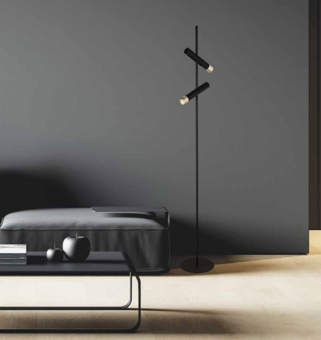 O candeeiro de pé Axis Duo combina linhas verticais puras com dois focos orientáveis, permitindo ajustar a luz conforme a necessidade do espaço. O seu desenho limpo e contemporâneo torna-o uma peça funcional e decorativa em simultâneo.