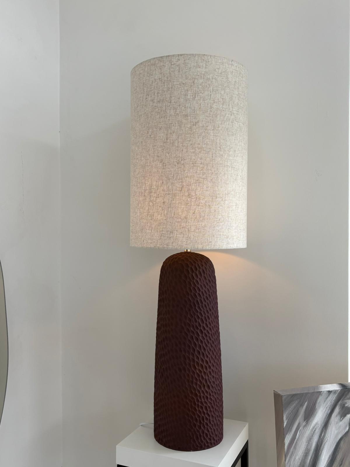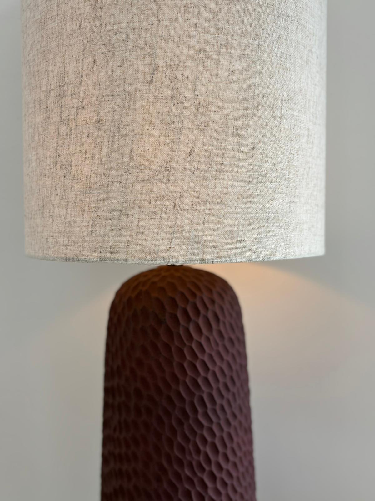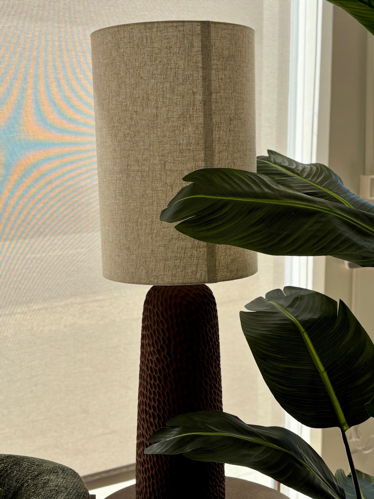 O Candeeiro Lua foi pensado para criar ambientes calmos e sofisticados, com uma iluminação suave que transforma qualquer canto num espaço mais acolhedor. A base texturada, de linhas orgânicas e acabamento escuro, contrasta com a cúpula em tecido claro — criando um equilíbrio elegante entre profundidade e leveza.