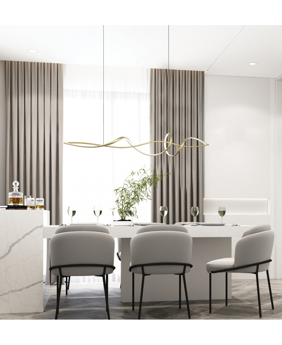 O Candeeiro Suspenso Harmonia destaca-se pelo seu desenho orgânico e contínuo, inspirado em linhas fluidas que parecem desenhar-se no ar. A estrutura em alumínio com acabamento Preto Mate , combinada com difusor acrílico, cria uma peça leve, sofisticada e visualmente marcante, ideal para interiores contemporâneos.