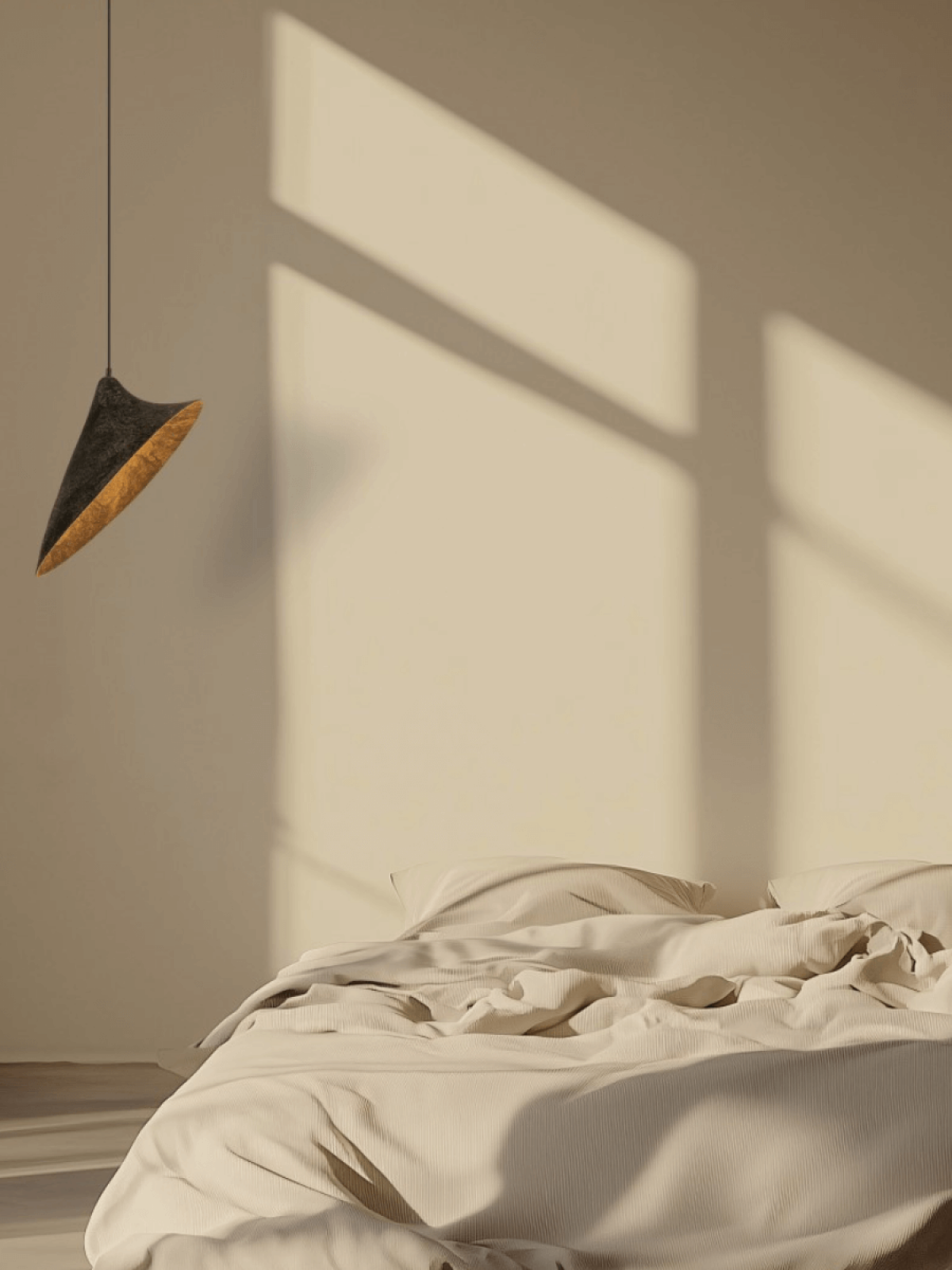 O Candeeiro Suspenso Silk Noir destaca-se pela sua forma orgânica e fluida, criada em seda de amoreira, que confere movimento e profundidade ao espaço. A silhueta escultórica transforma a luz num elemento decorativo subtil, projetando uma atmosfera quente e envolvente.