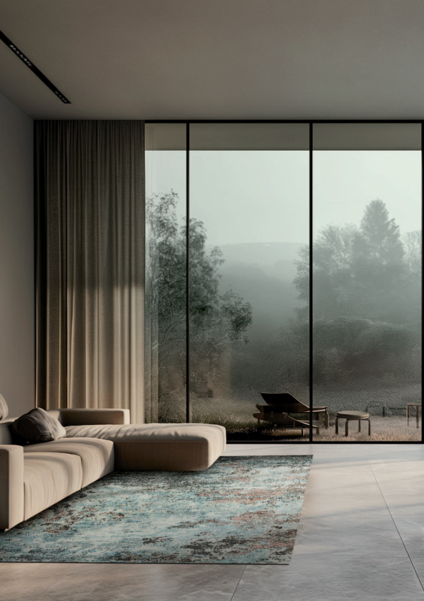 A Carpete Sesimbra Teal-Peach destaca-se pela sua combinação artística de azul-teal, pêssego e nuances neutras, criando um jogo de cor que remete à suavidade das paisagens naturais. O efeito visual texturado dá profundidade e movimento ao ambiente, transformando qualquer sala num espaço mais acolhedor e sofisticado.