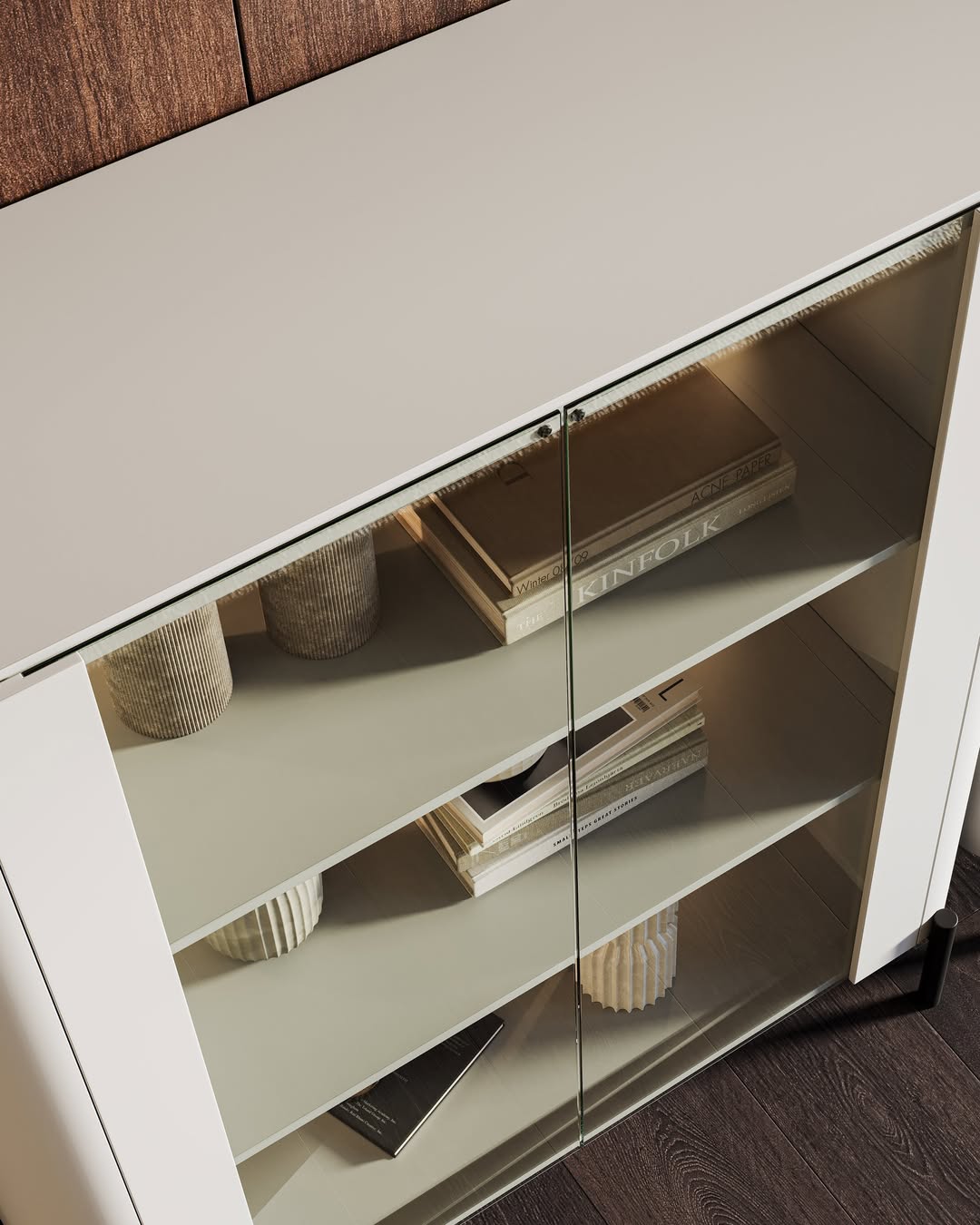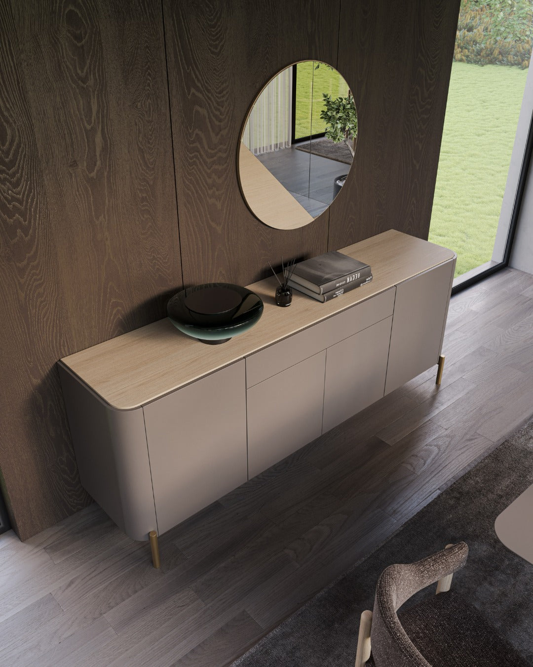 O Conjunto Lory foi concebido para criar ambientes coerentes, elegantes e intemporais, onde cada peça se complementa de forma natural. A combinação entre o calor do carvalho e o acabamento lacado mate em taupe resulta numa estética equilibrada e sofisticada, perfeita para espaços contemporâneos.