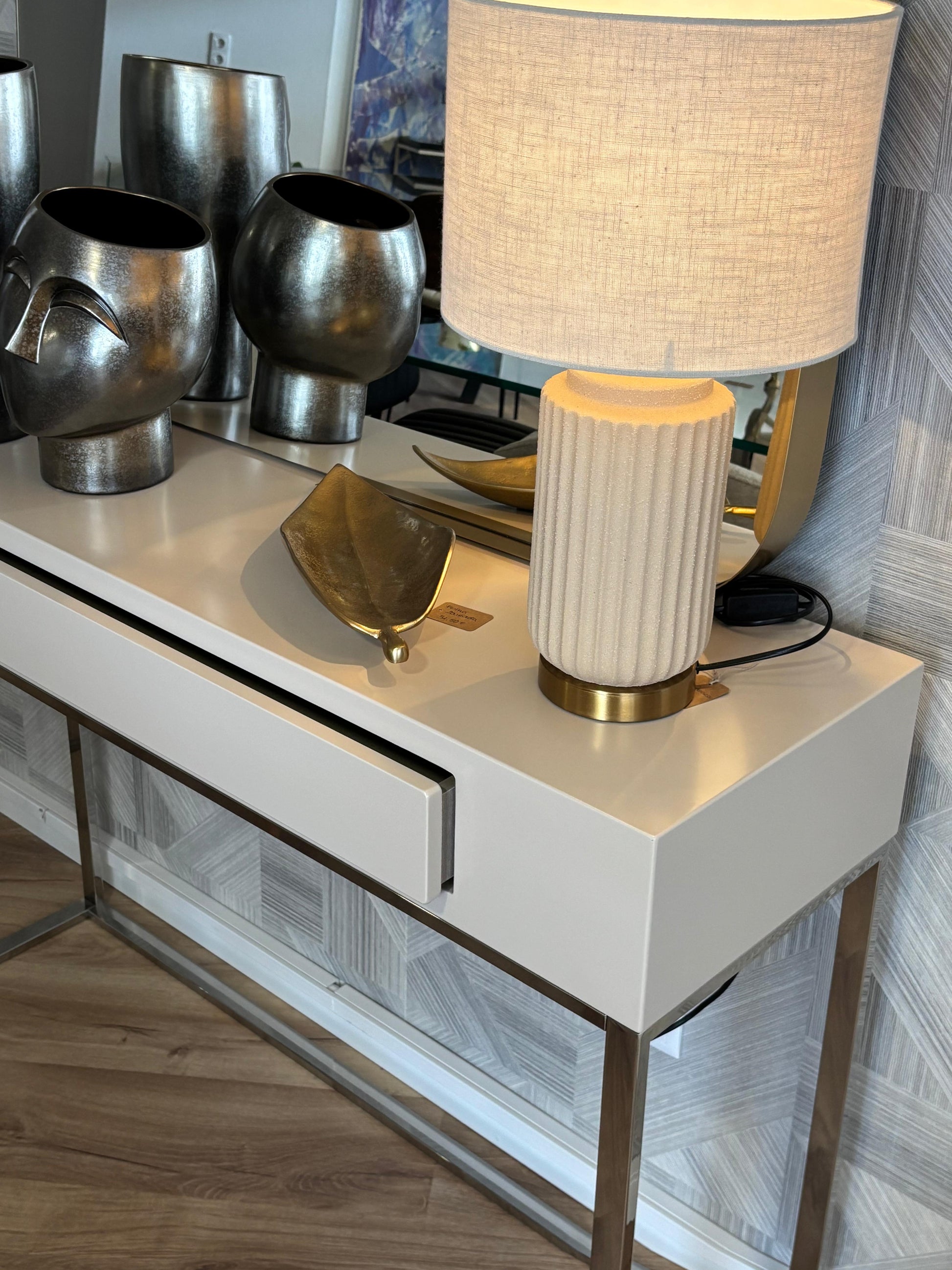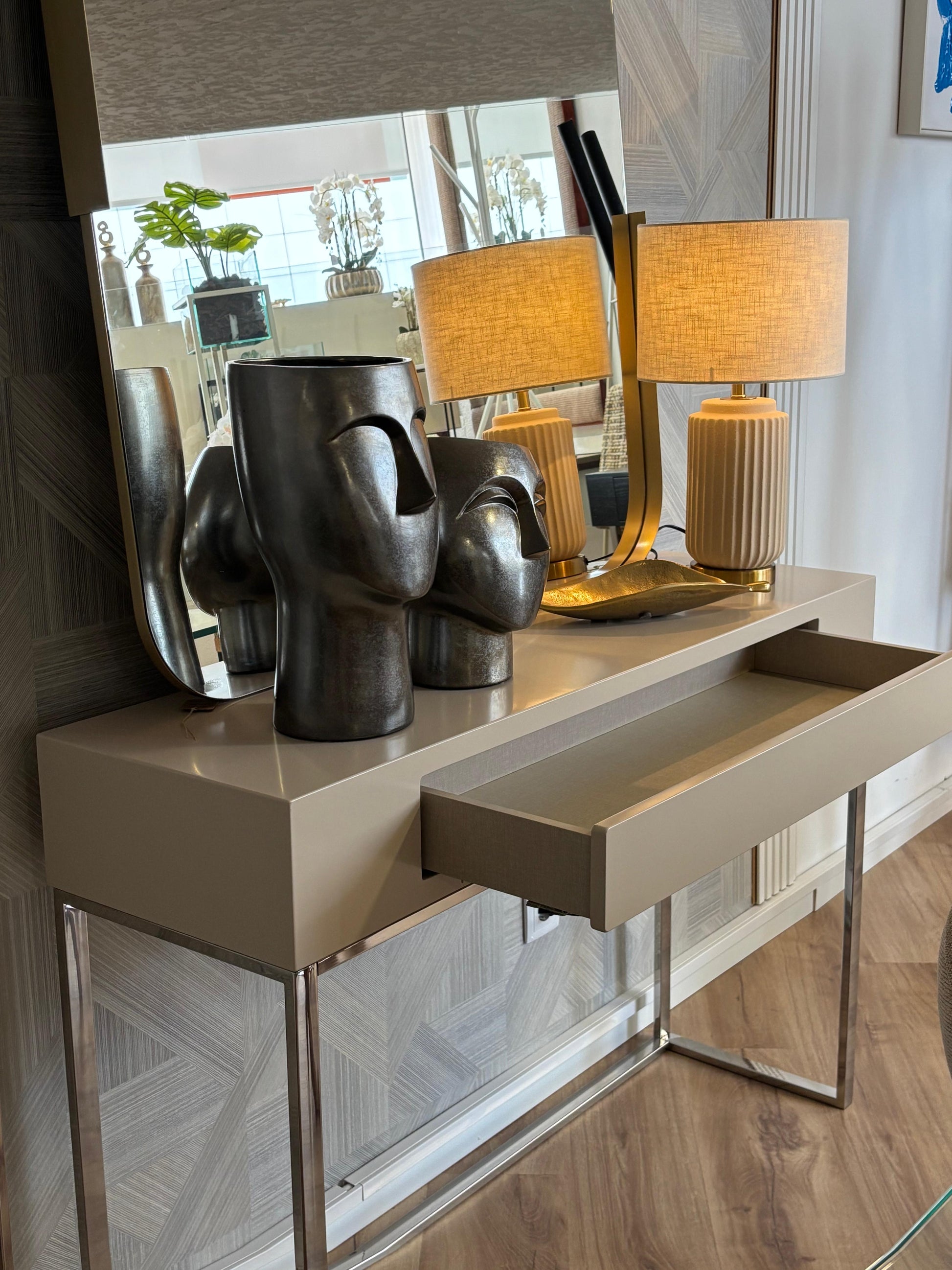 A Consola Dinart é uma peça intemporal que alia a leveza do design minimalista à sofisticação do inox polido.