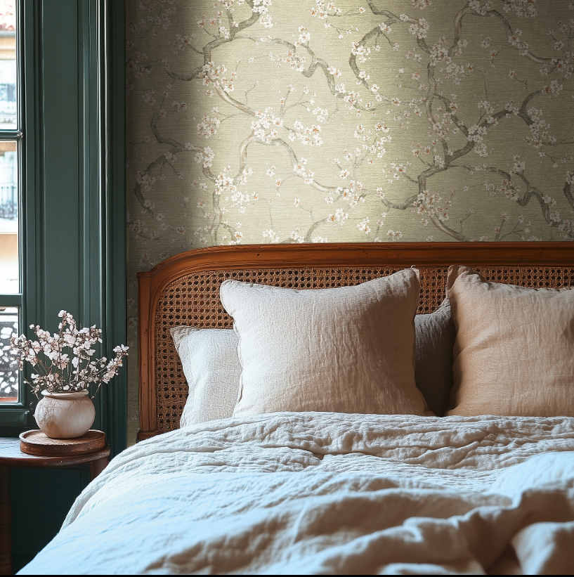 Este papel de parede destaca-se pelo seu padrão floral subtil, inspirado em ramos orgânicos e flores delicadas, criando uma composição equilibrada e intemporal. A paleta suave e a textura visual conferem profundidade e leveza ao espaço, tornando-o ideal para interiores acolhedores e sofisticados.