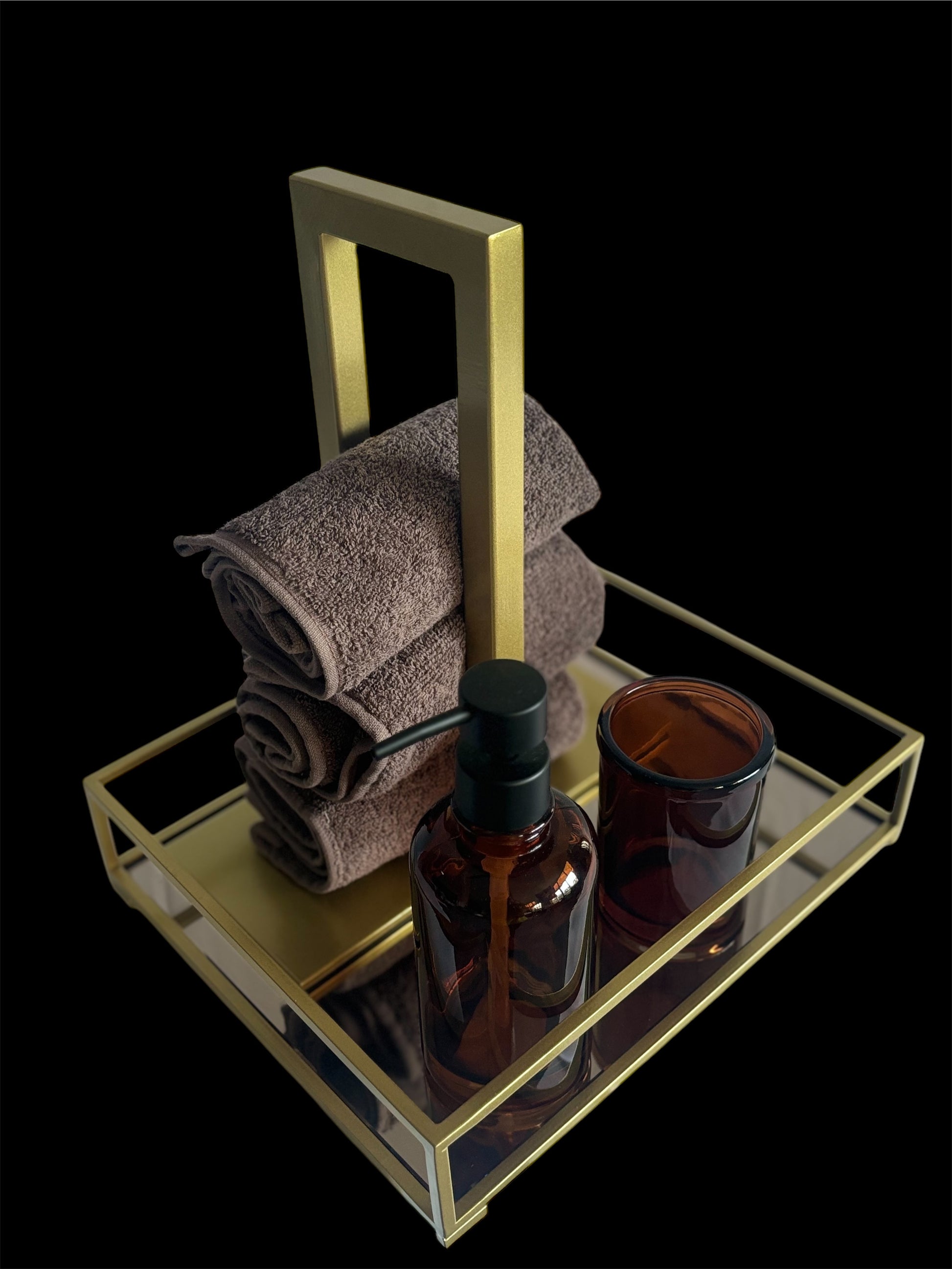 Muito além de simples apoio, os tabuleiros Autênticas assumem-se como peças decorativas que elevam qualquer ambiente. Com estrutura em ferro e bases de espelho — são um reflexo da estética refinada que guia cada detalhe da nossa marca.